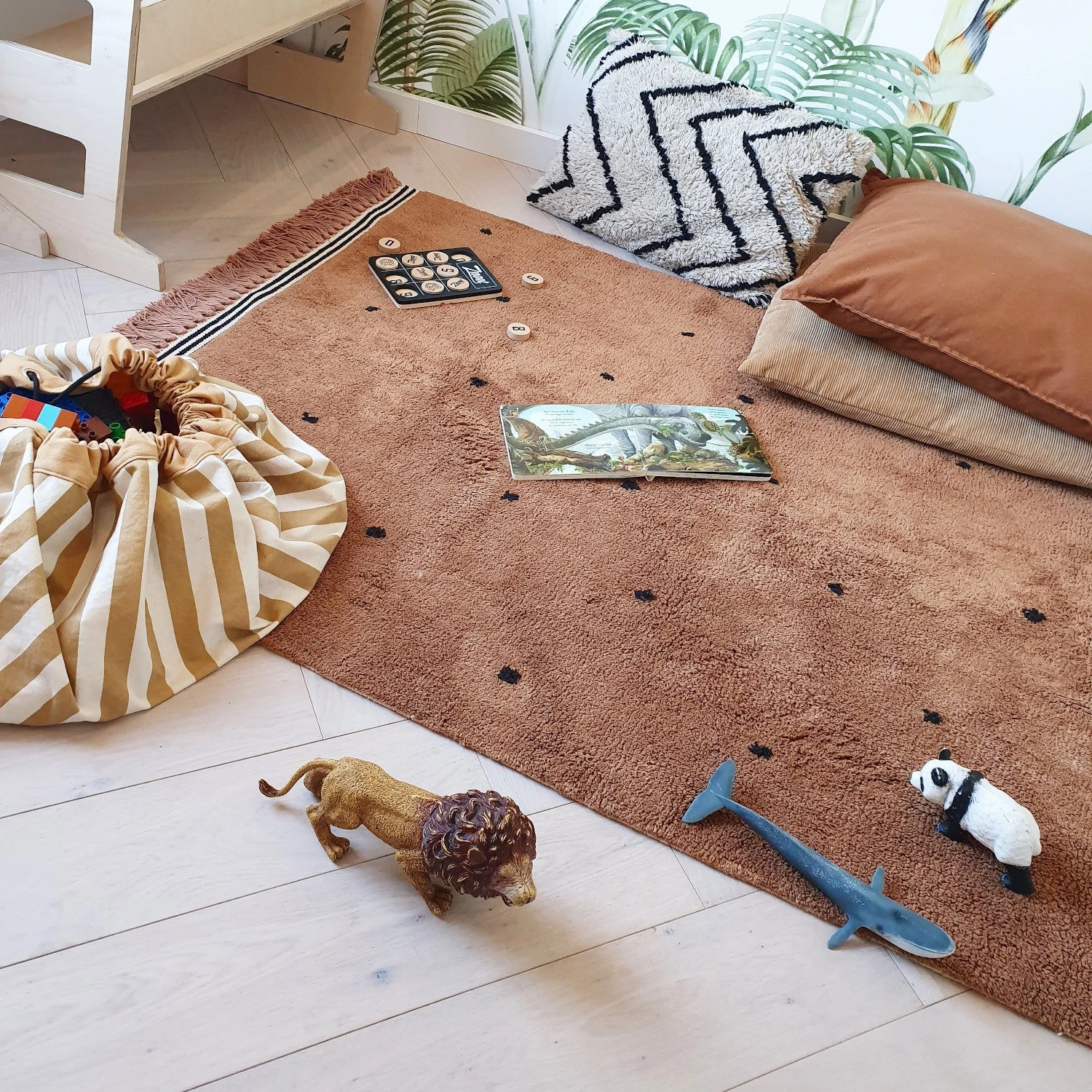 With the Tapis Petit Semmie Rug 120 x 170 cm you can brighten up your child’s room quickly and easily! The rug has warm natural colors that create an attractive appearance. Furthermore, the rug is made of high-quality material and feels comfortable and soft.
