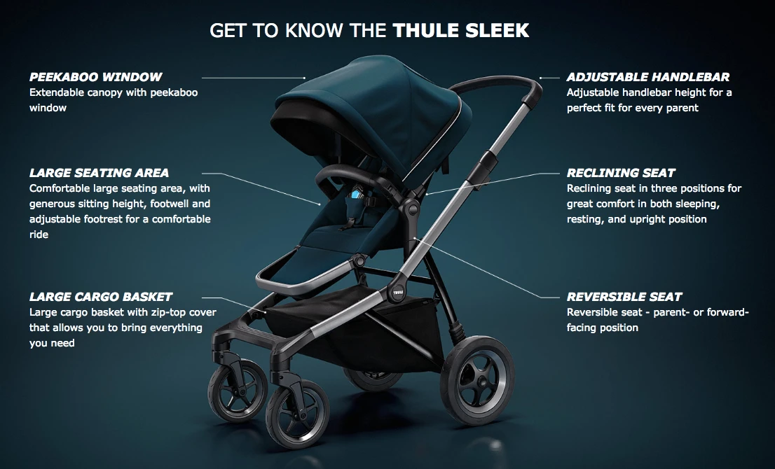 Thule Sleek, the stylish and flexible stroller for the adventurous parent.