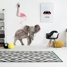 This friendly elephant with it’s pair of tusks, great ears and a long curling trunk will add great decorative impact to a child’s room. It has a soft, plush coat and a comforting expression. The head is light, and easy to hang with the loop attached to the back.Â